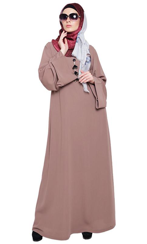 Besuited Oak Brown Double Panel Abaya With Pintucks