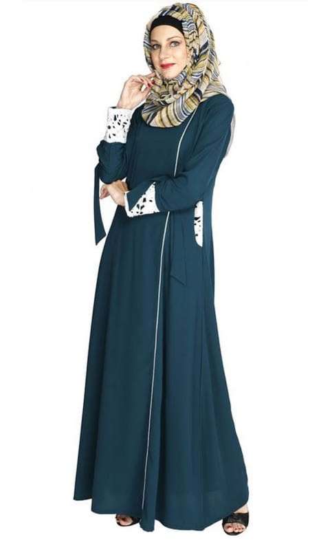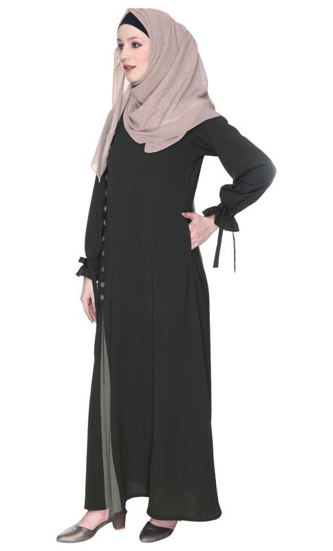 Sleek Looking Olive And Dead Mint Slit Style Abaya