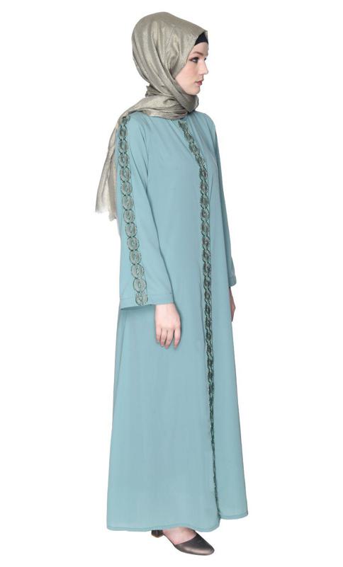 Sleek Looking Olive And Dead Mint Slit Style Abaya