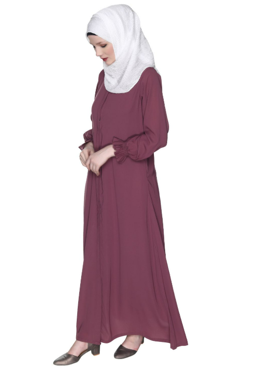 Classic Plain Onion Pink Abaya With Elastic Cuffs (Made-To-Order)