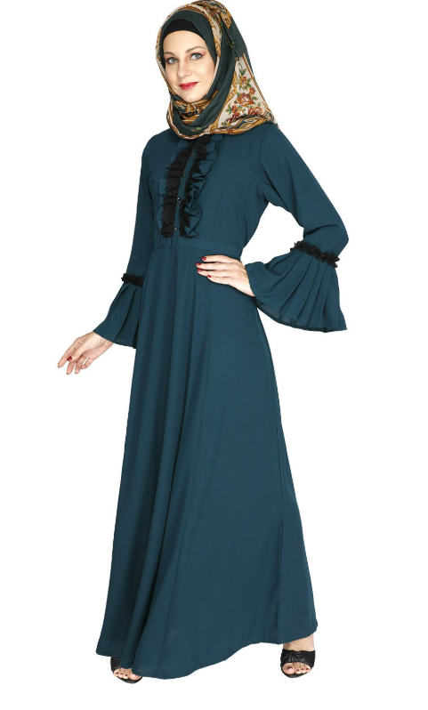 Stylish Dead Mint Coat Style Abaya With White Piping (Made-To-Order)