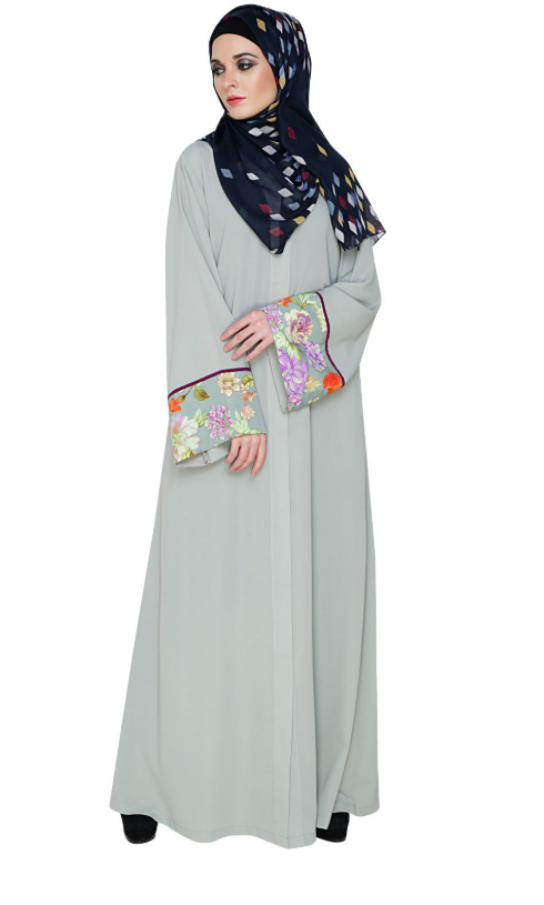 Fancy Embroidered Grey Dubai Style Abaya (Made-To-Order)