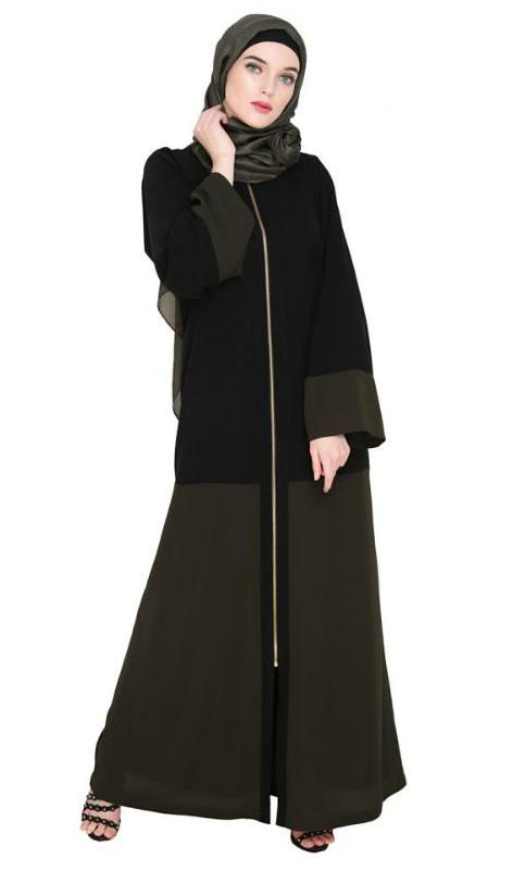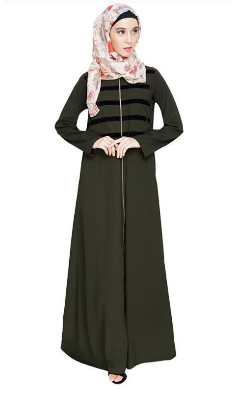 Dazzling Zip-Up Olive Abaya (Made-To-Order)