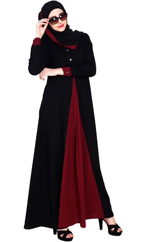 Quirky Dubai Style Maroon Abaya With Detailing (Made-To-Order)