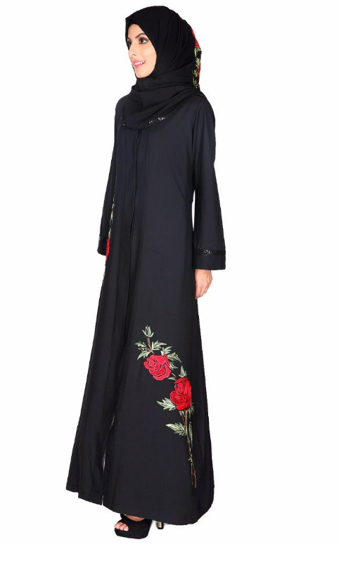 Elegant Silk Thread Rose Embroidered Abaya (Made-To-Order)