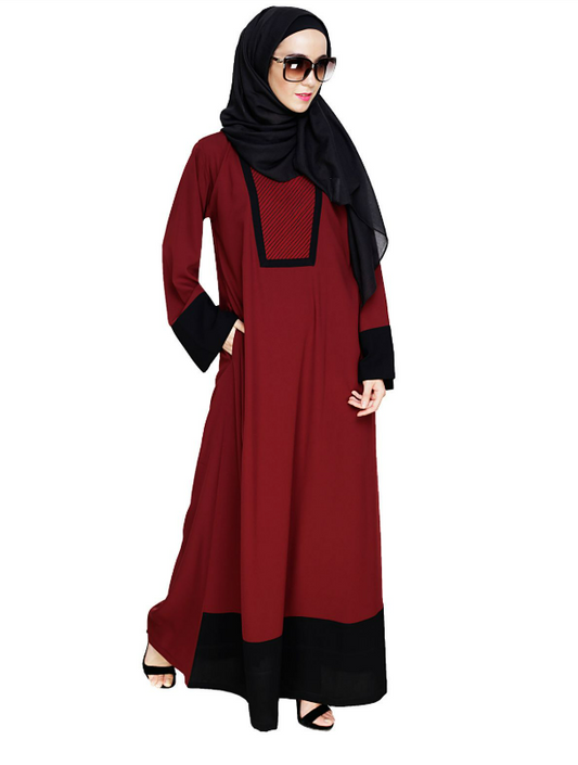 Embroidered Yoke Wine Dubai Style Abaya (Made-To-Order)