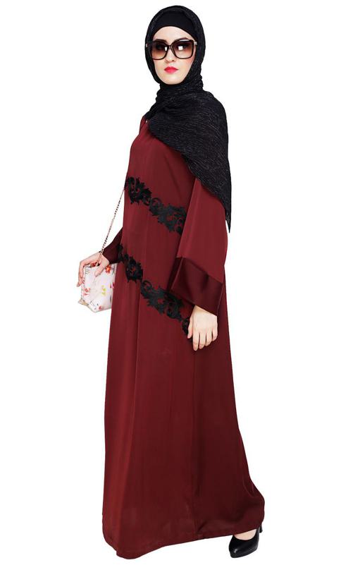 Fancy Embroidered Wine Dubai Style Abaya (Made-To-Order)