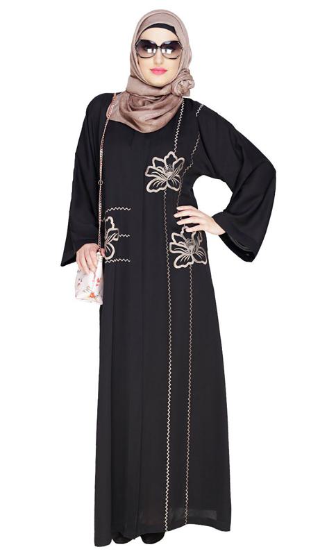 Exclusive Grey Applique Dubai Style Abaya (Made-To-Order)