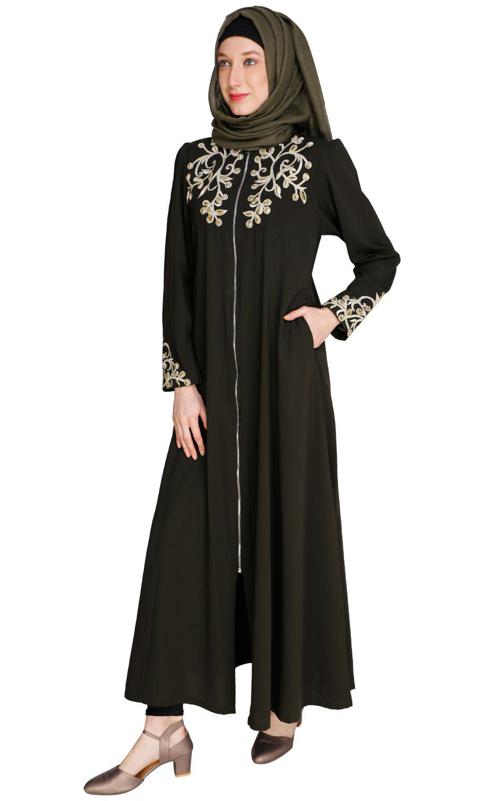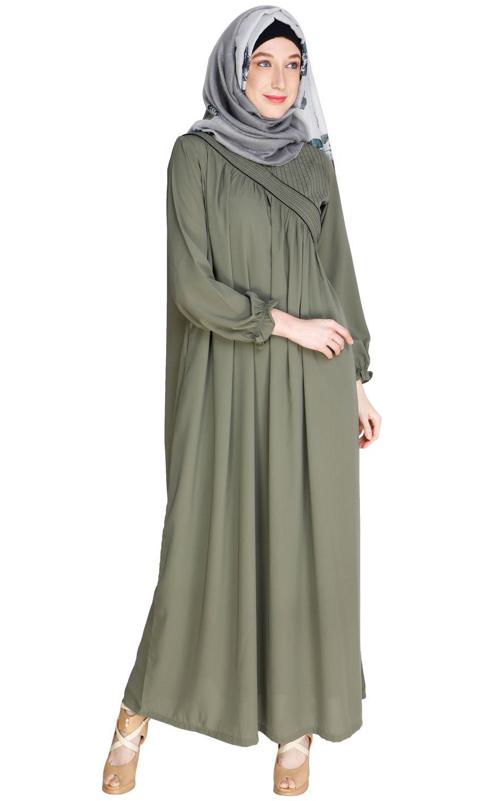 Feather Shot Dark Olive Abaya (Made-To-Order)