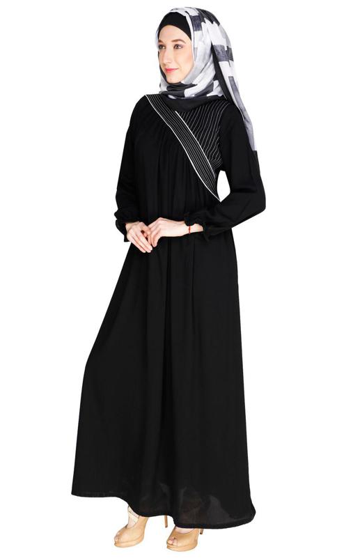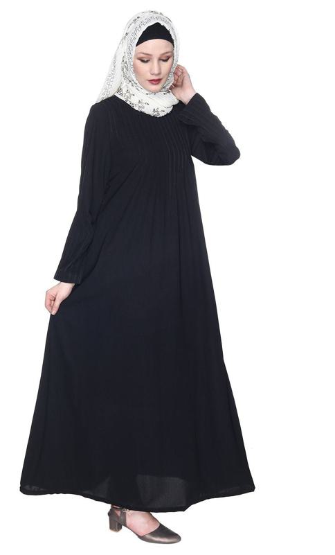 Sleek And Simple Black Abaya With Pintuck Detailing (Made-To-Order)