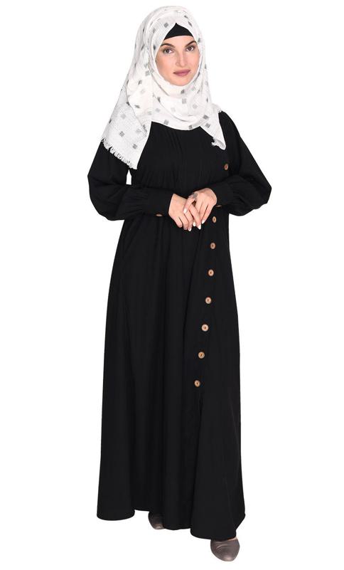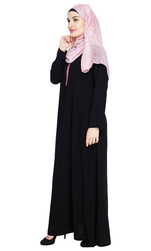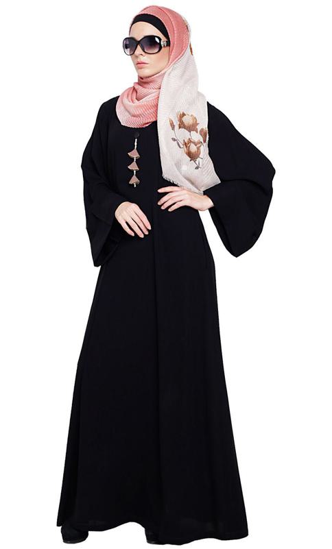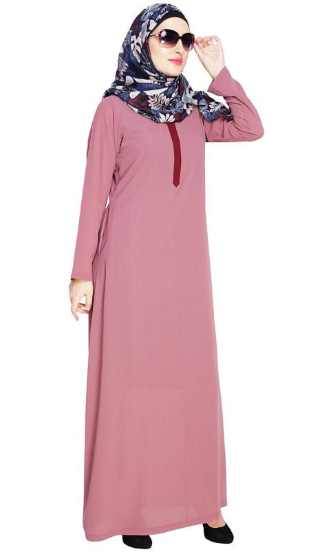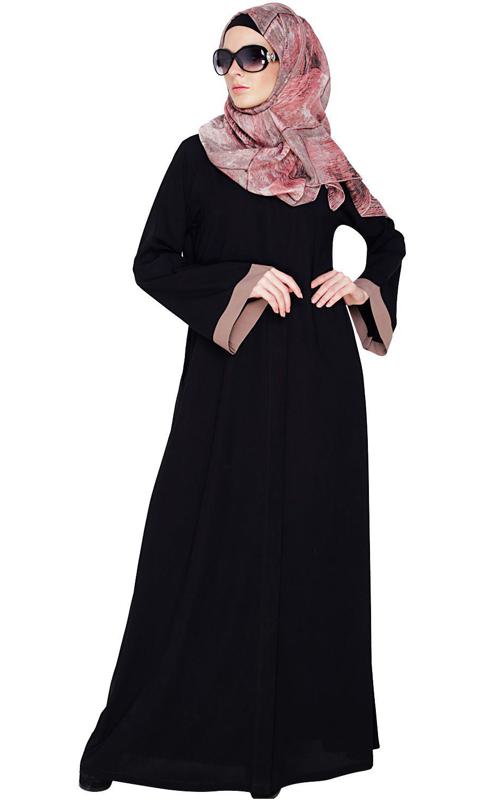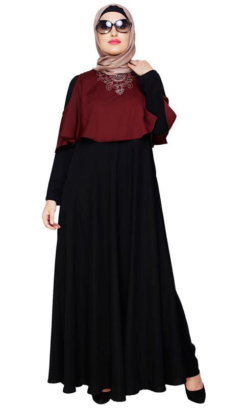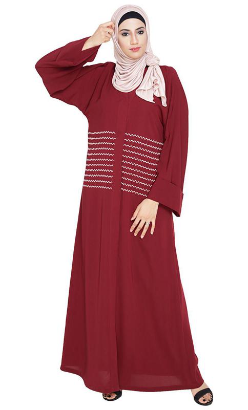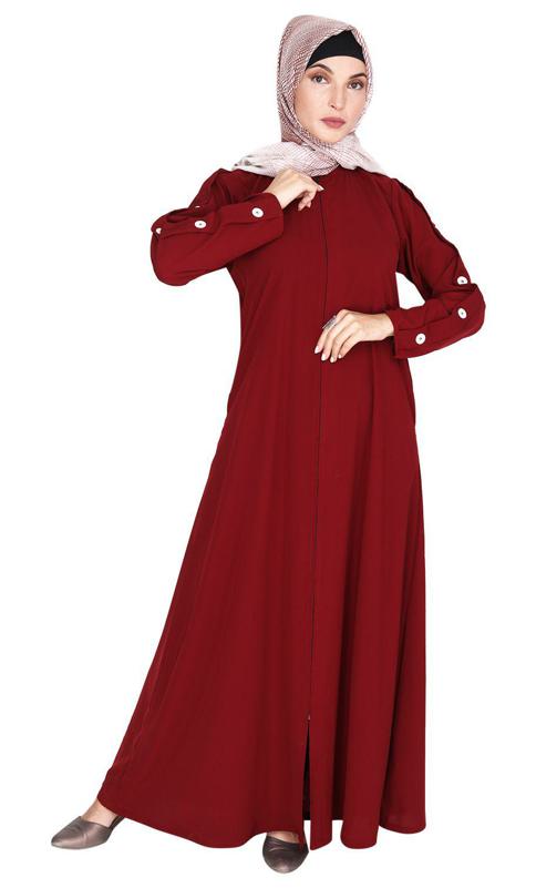 Delightful and Simple Maroon Abaya with Designer Sleeves (Made-To-Order)