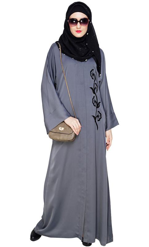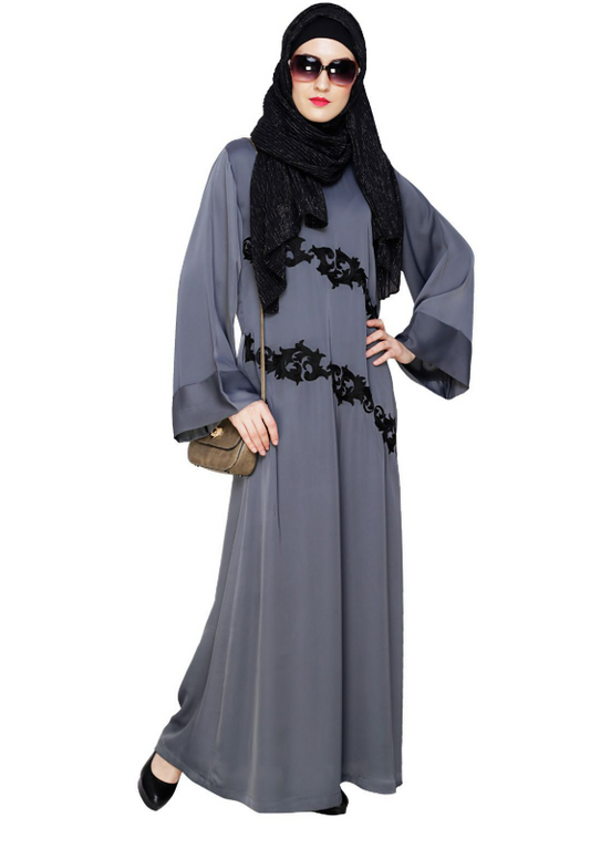 Exclusive Grey Applique Dubai Style Abaya (Made-To-Order)