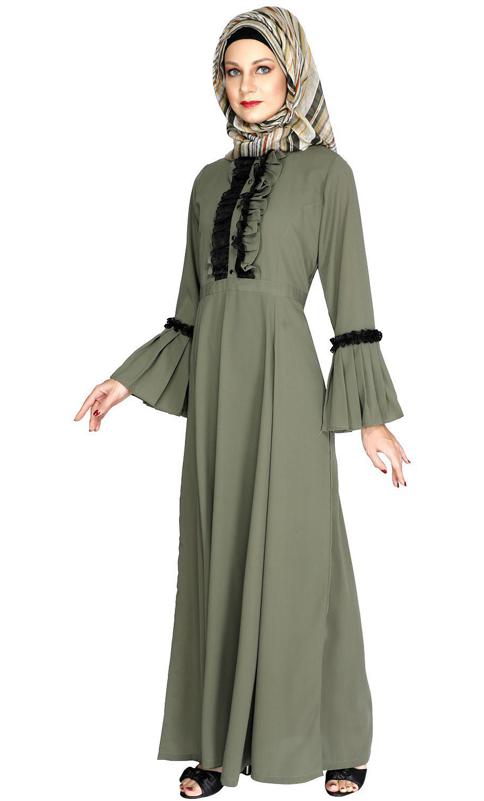 Fancy Embroidered Grey Dubai Style Abaya (Made-To-Order)