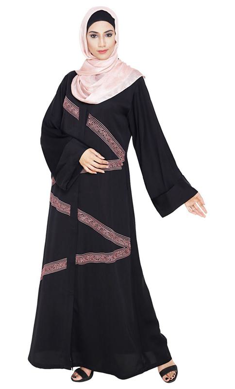 Jazzy Embroidered Wine Dubai Style Abaya (Made-To-Order)