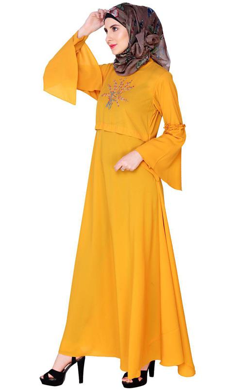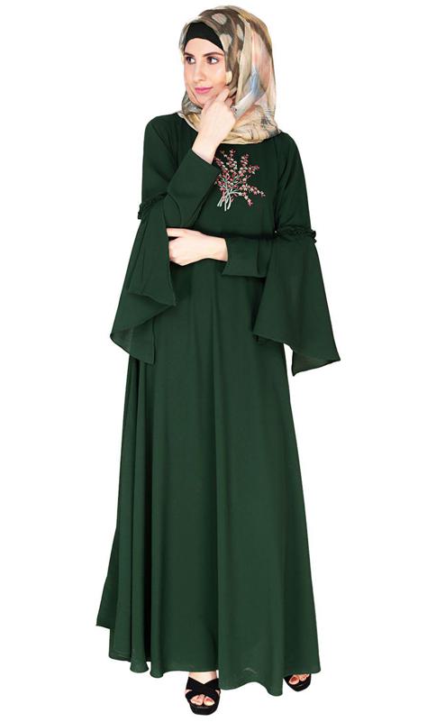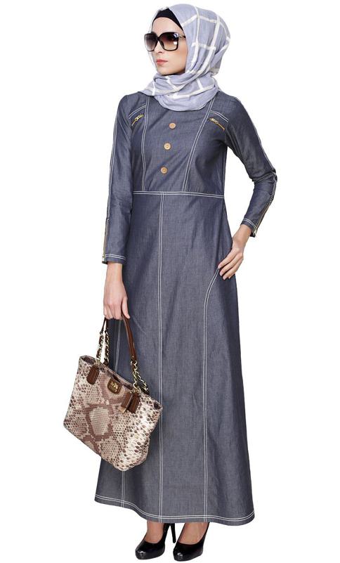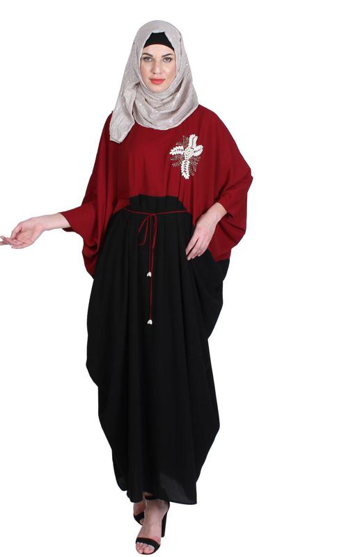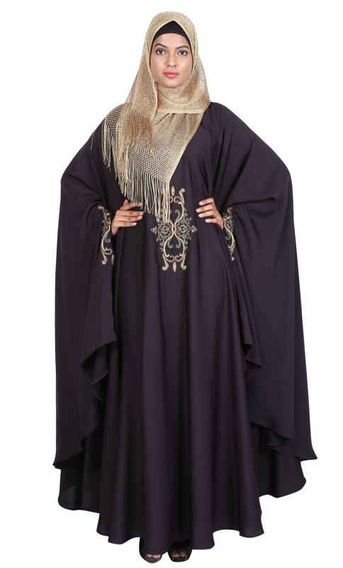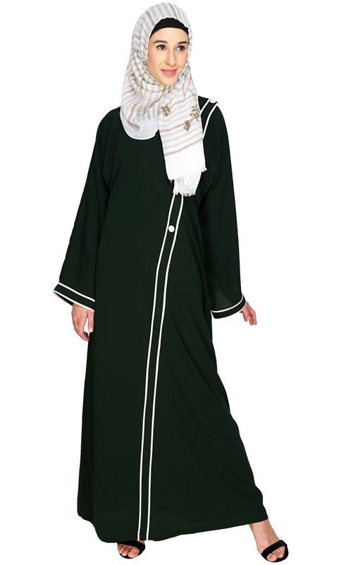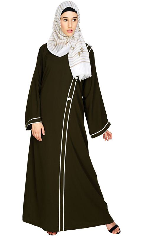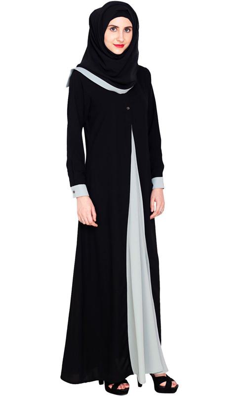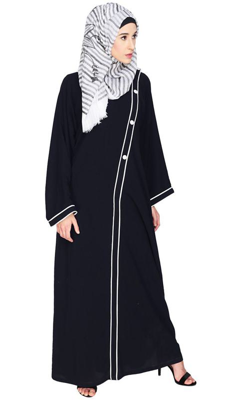 Black Kaftan with Striped Grey Border (Made-To-Order)