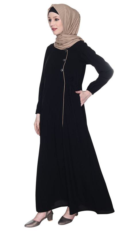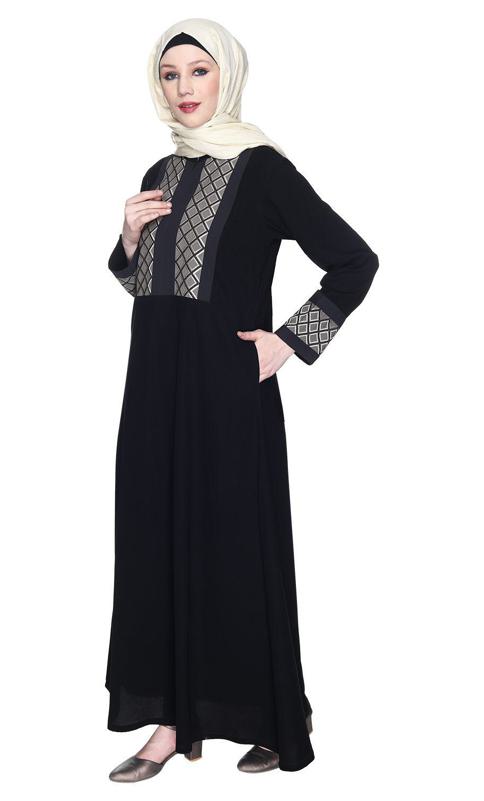 Magnificent Black Abaya With Gleaming Yolk And Sleeves