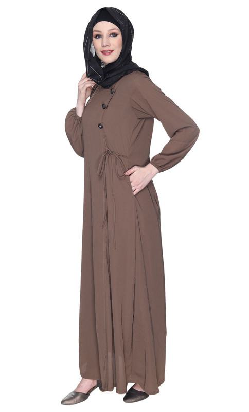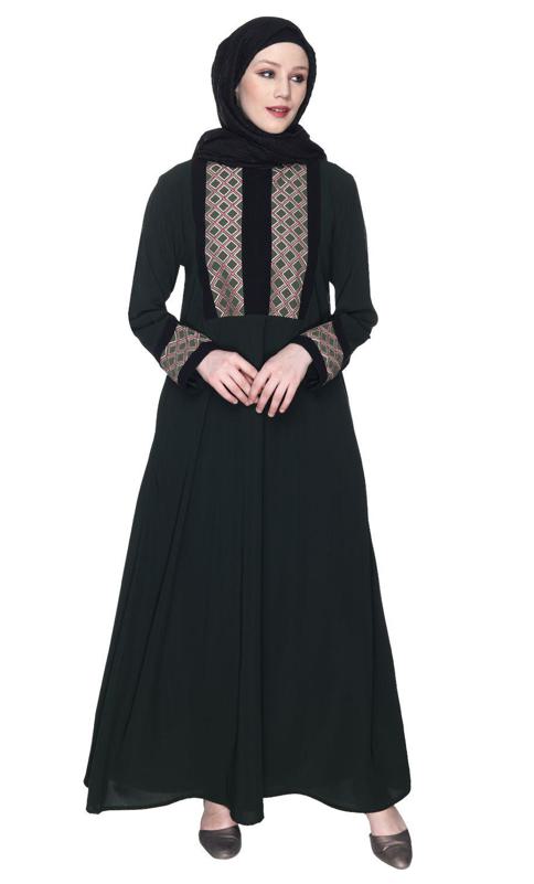 Magnificent Olive Green Abaya With Gleaming Yolk And Sleeves