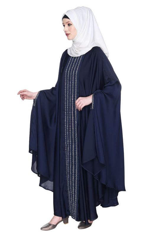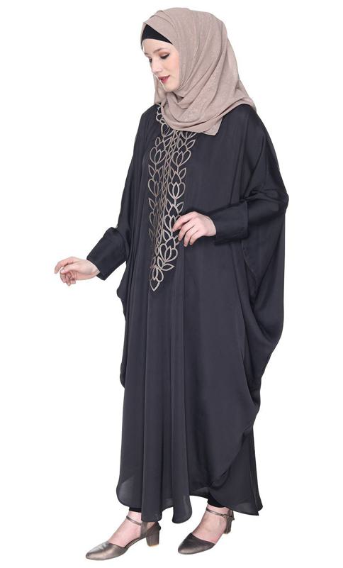 Persian Embroidered Black Abaya With Black Embroidery (Made-To-Order)