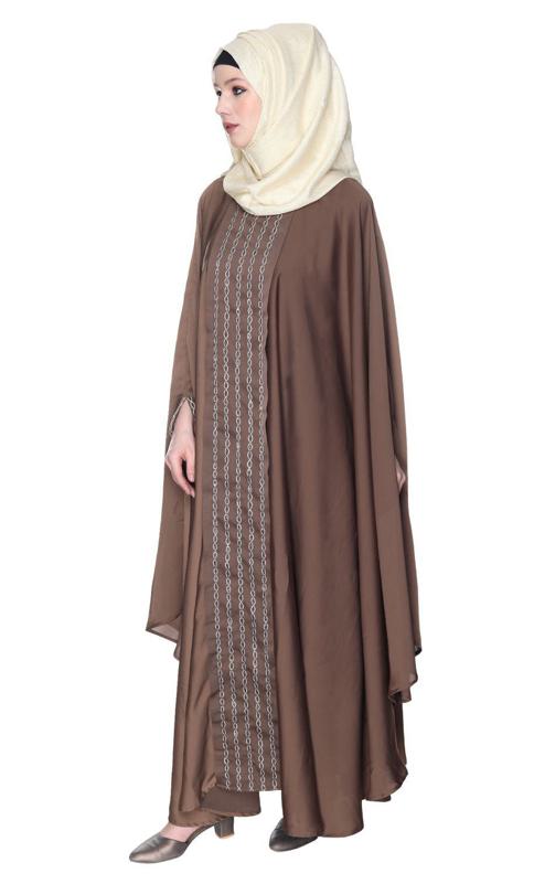 Festive Glittering Embroidered Kaftan In Oak Brown
