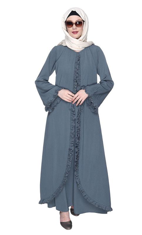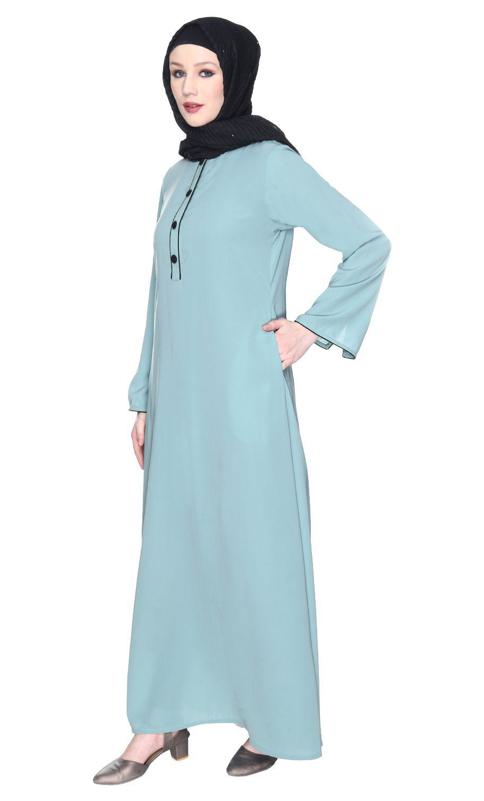 Sleek Looking Black And Sage Green Slit Style Abaya