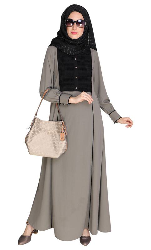 Sold outWavetucks Yoke Grey Abaya