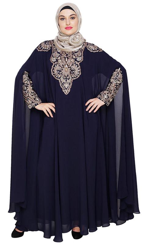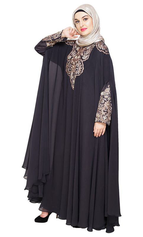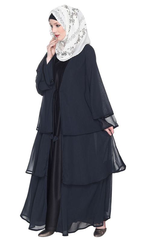 Multi Layered Shrug Style Dark Grey Georgette Abaya