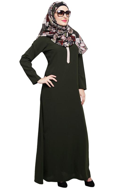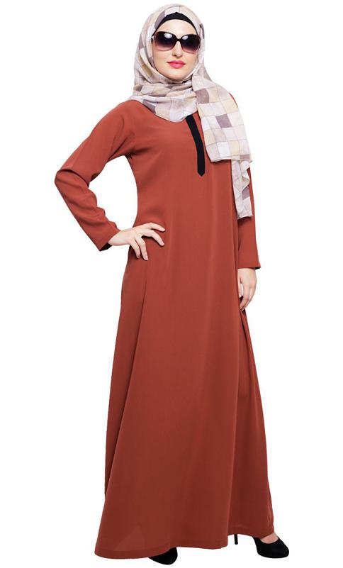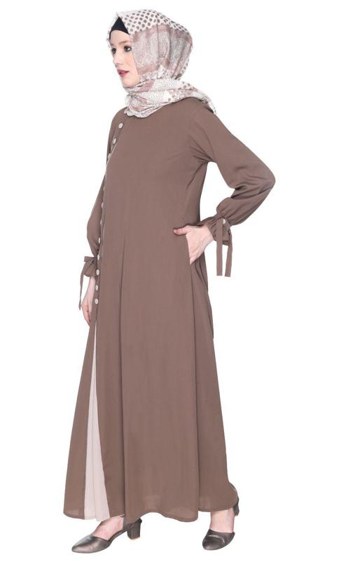 Sleek Looking Brown And Light Beige Slit Style Abaya