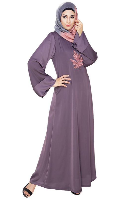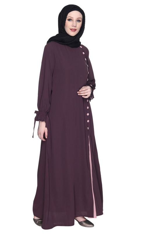 Sleek Looking Purple And Light Pink Slit Style Abaya