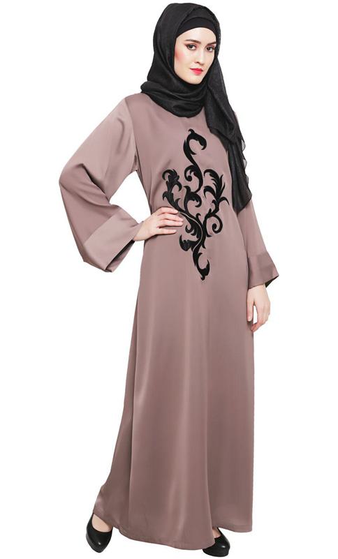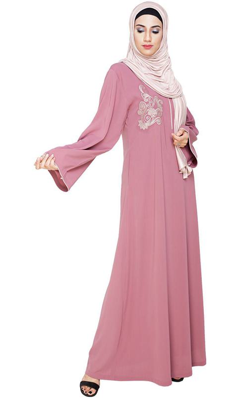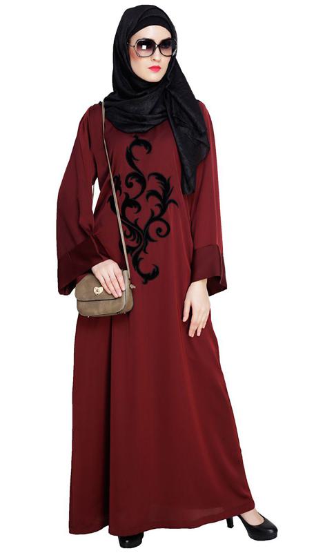 Fancy Embroidered Wine Dubai Style Abaya (Made-To-Order)