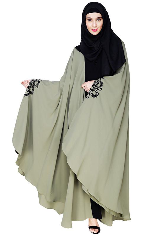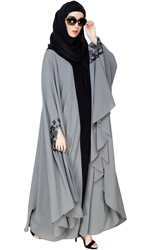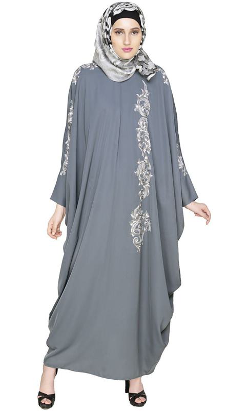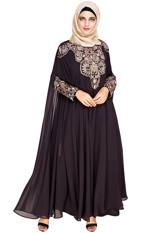 Dual Shade Floral Embroidered Black Kaftan (Made-To-Order)