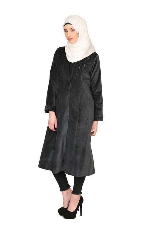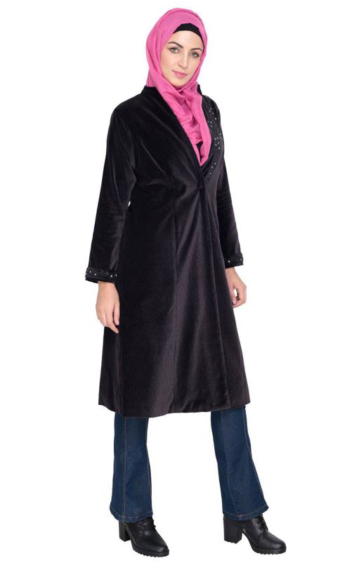 Black Velvet, Pearl Hand-Embroidery Coat Abaya