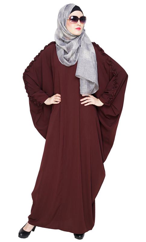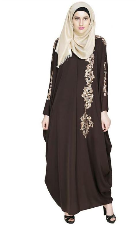 Dual Shade Floral Embroidered Dark Brown Kaftan (Made-To-Order)