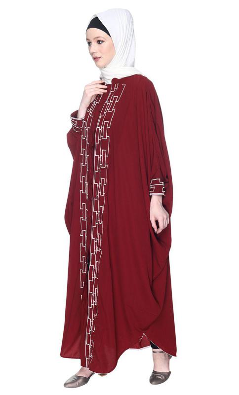 Maroon And White Dimensional Design Embroidered Kaftan (Made-To-Order)