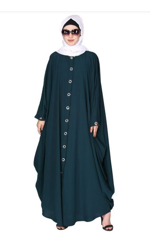 Ultra Smart Casual Front Open Bottle Green Kaftan With Shining Metallic Rivets (Made-To-Order)