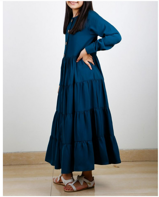 Contemporary Blue Multi Layered Gather Kids Abaya (Made-To-Order)