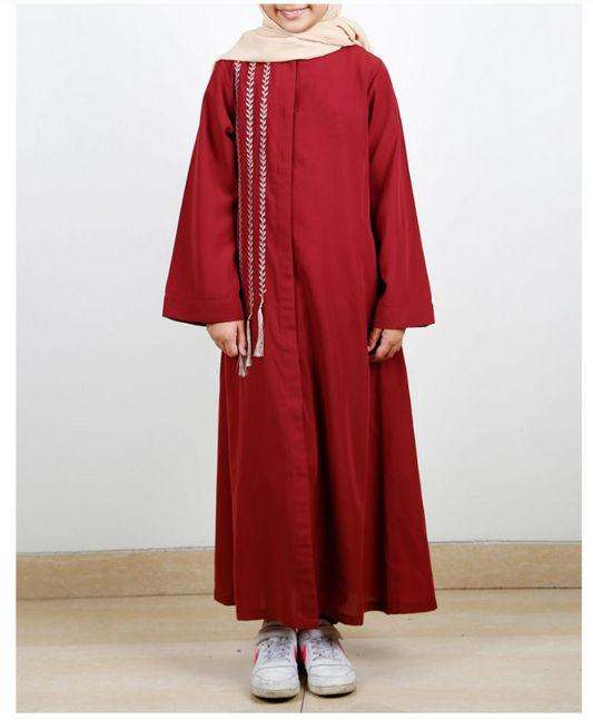 Elegant Brick Red Embroidered Kids Abaya (Made-To-Order)