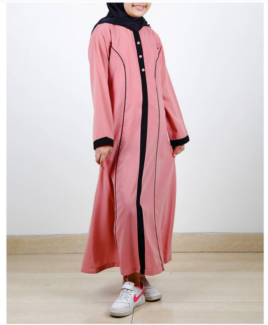 Onion Pink Panelled Kids Abaya (Made-To-Order)