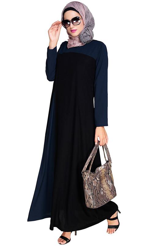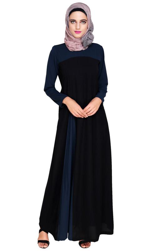Accordion Side Pleated Blue and Black Abaya
