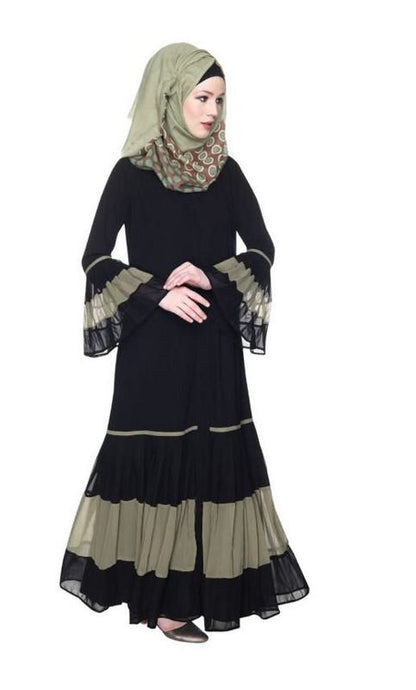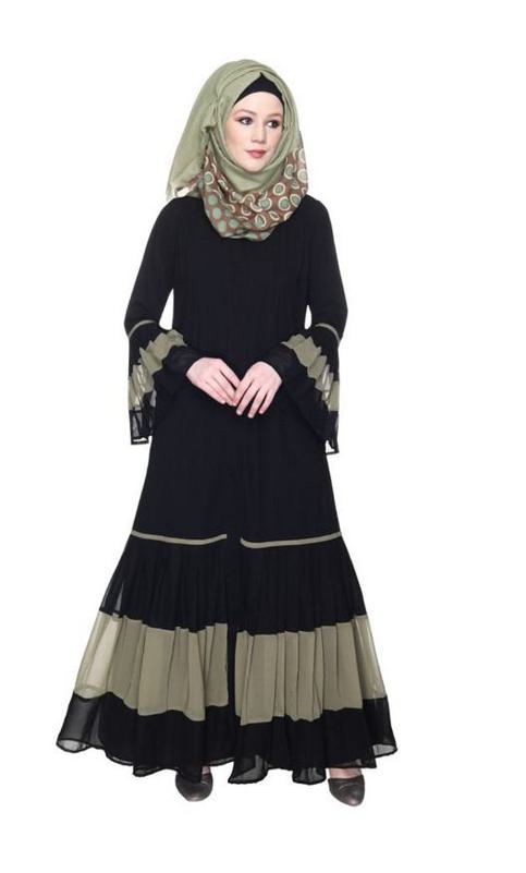 Bell Style Pleated Dead Mint & Black Georgette Abaya