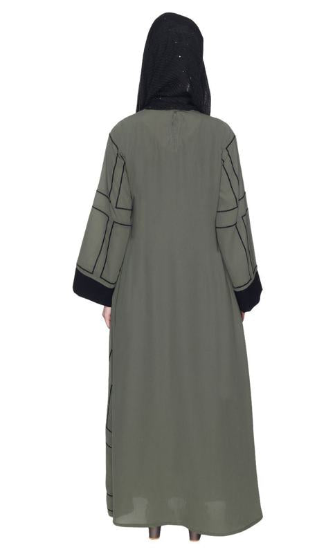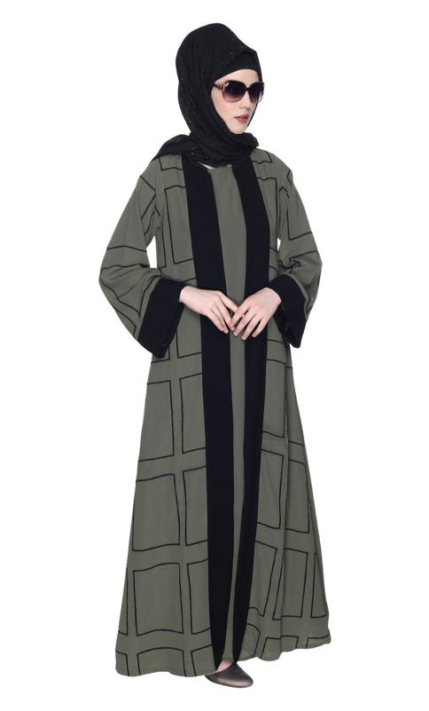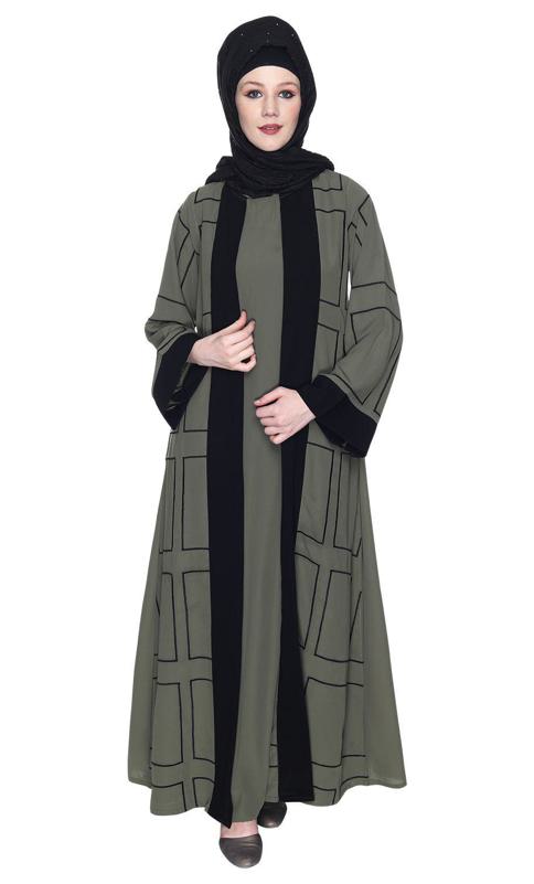 Designer Shrug Style Dead Mint And Black Closed Abaya