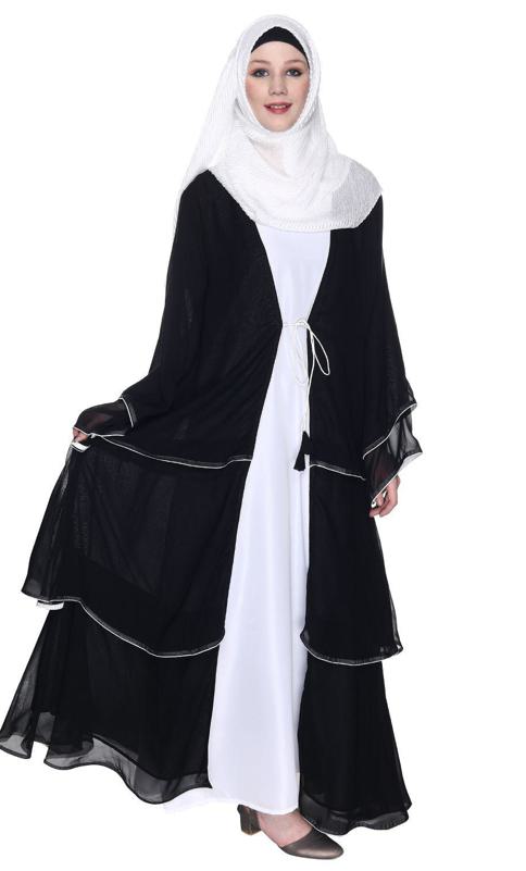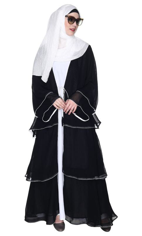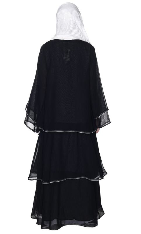 Multi Layered Shrug Style Black Georgette Abaya