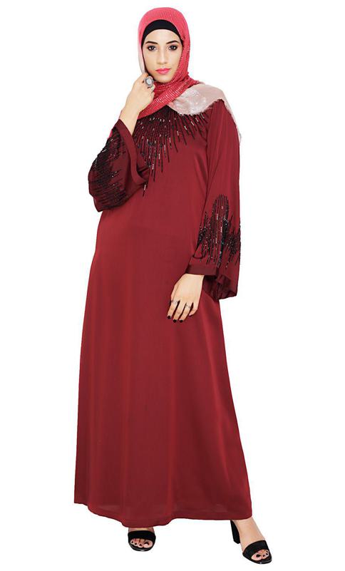 Ornate Wine Dubai Style Abaya