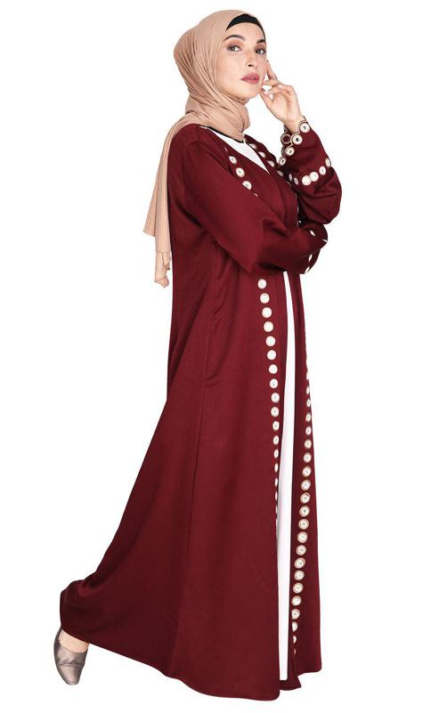 Wine Jacket Style Abaya with Exquisite Mirror Work